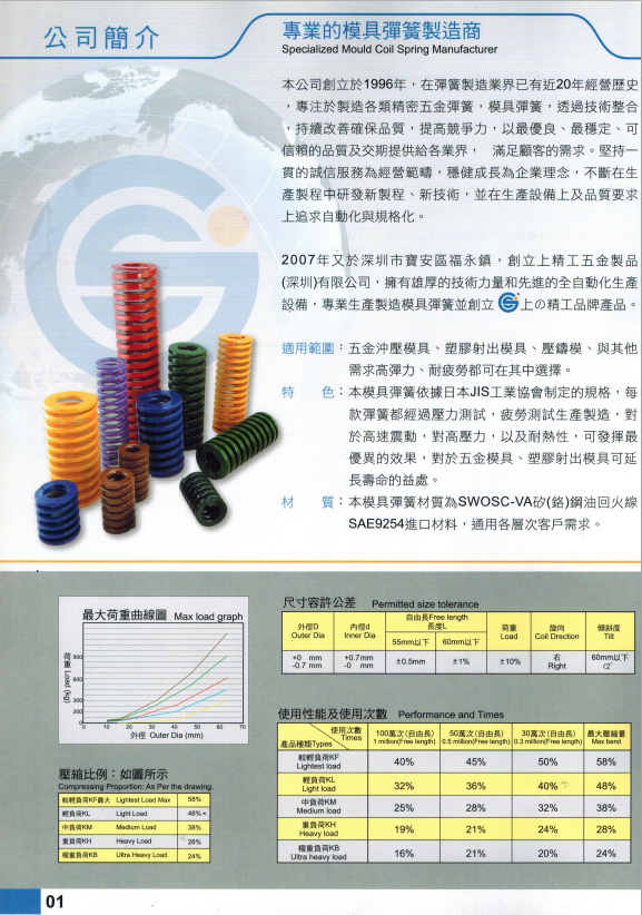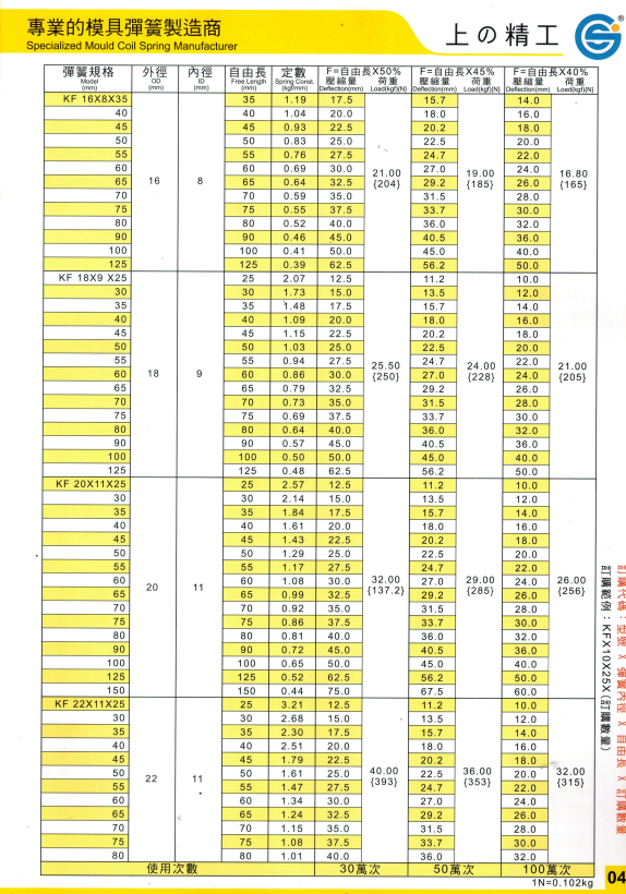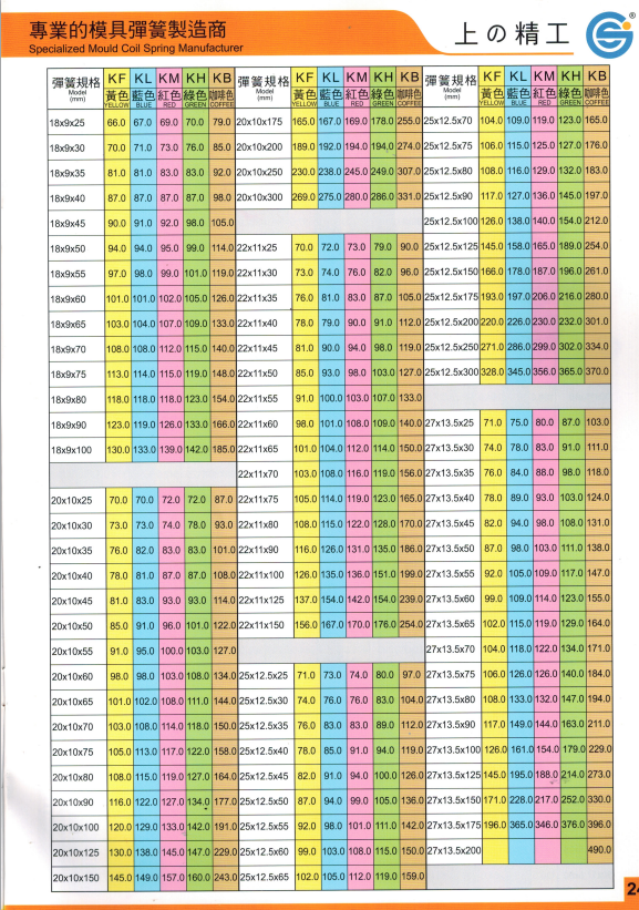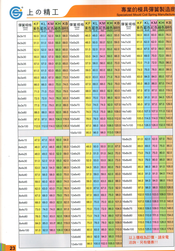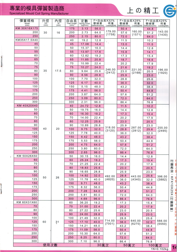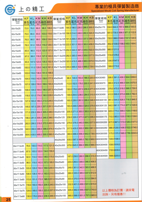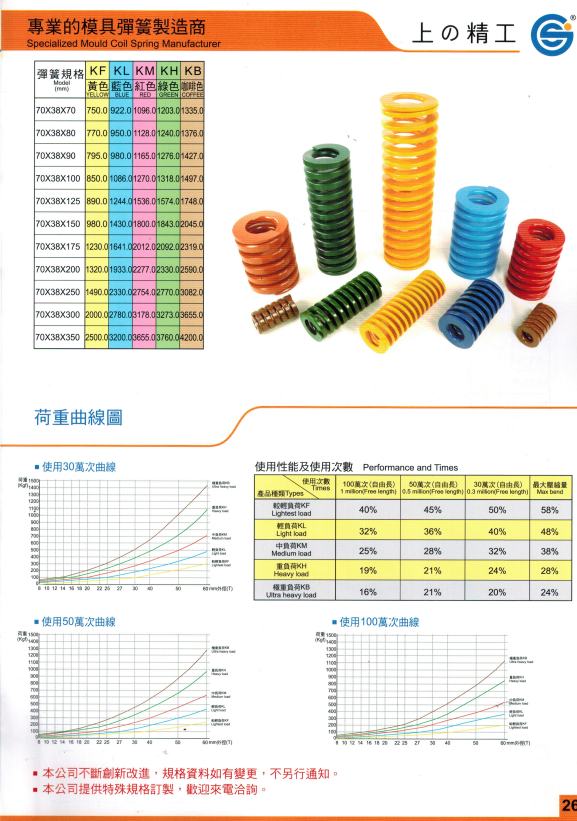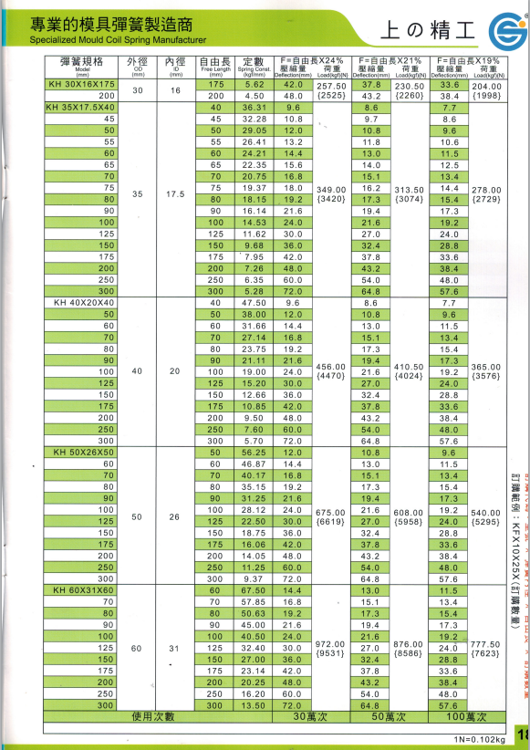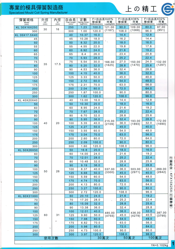 上精工模具彈簧規格書(產品大全)