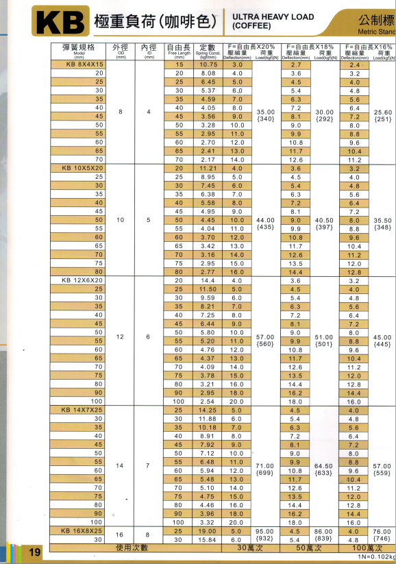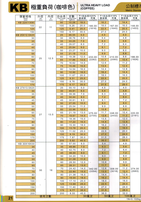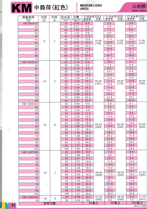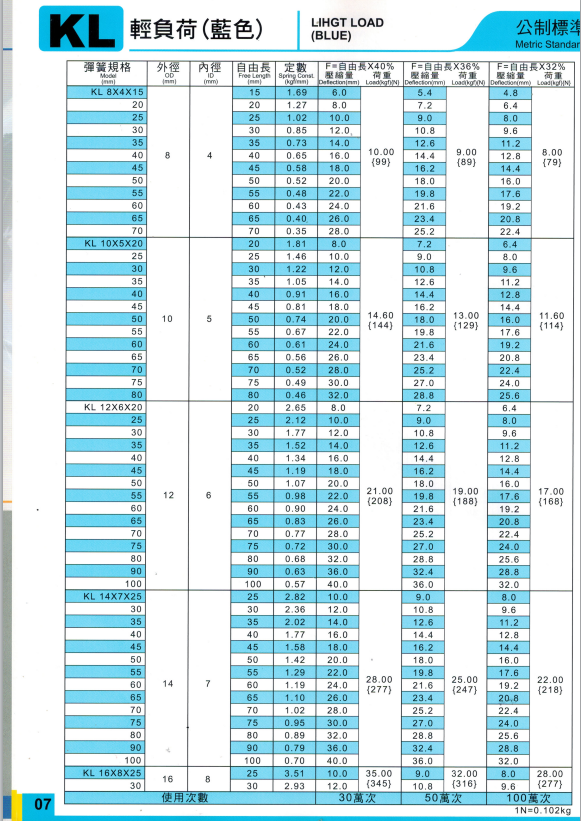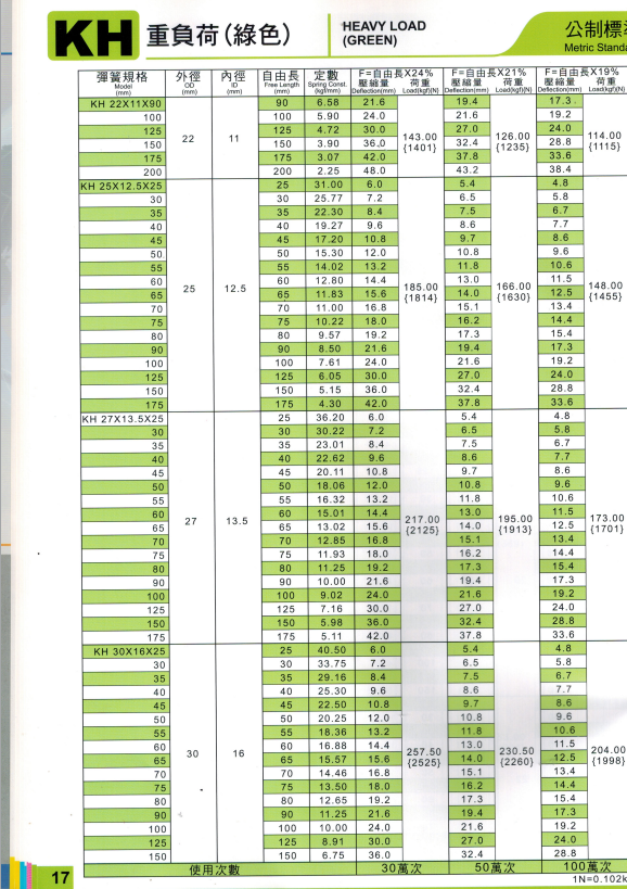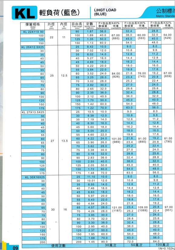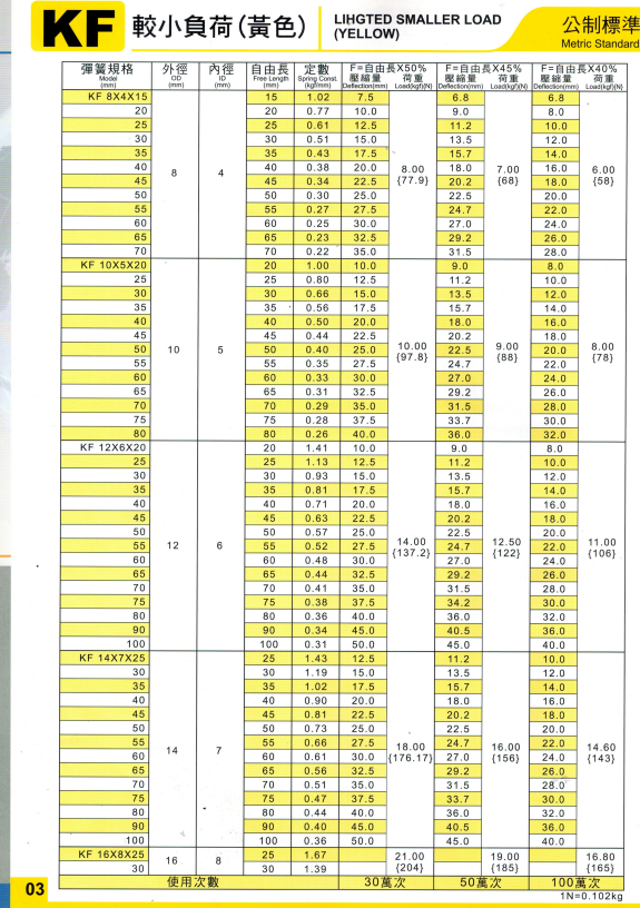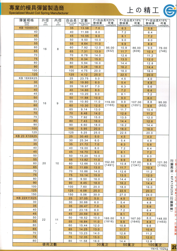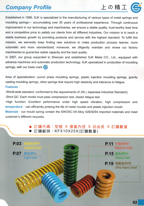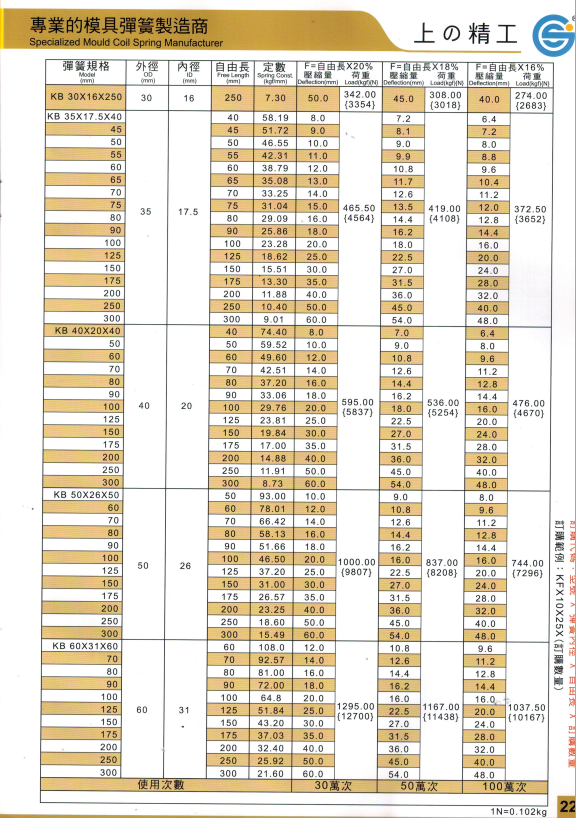 上精工模具彈簧規格書(產品大全)